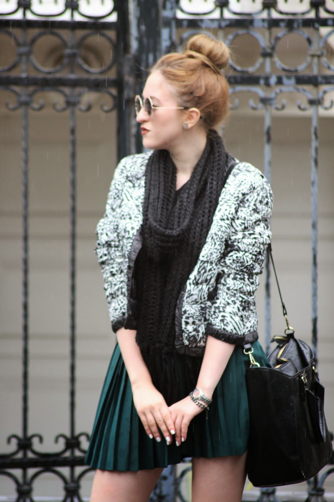 'Let it rain over meeee'.. So, I'm amazed how weather in Serbia is changeable. Yesterday, I literally wore flats and today, rubber boots. Wow! I'm starting to feel like we're living in London. Weird. I'm aware that this outfit below is so dark and sombre but it's in spirit of the weather in Belgrade, right? And I love it. Rainy and cloudy days are my favs. It's very odd, but I almost hate summer. This green pleated skirt looks like the pink one, from Lady like post, but it's just the design that I think it fits me well and I feel so comfortable in them. What's yours favorite model of a skirt?